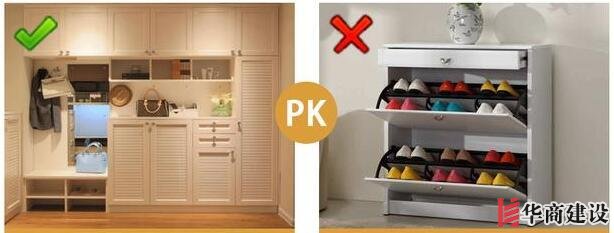 1、家里的玄關,在設計的時候,鞋柜一定要大,別到時候鞋子多了,沒地方放,然后一開門到處都堆的鞋子。